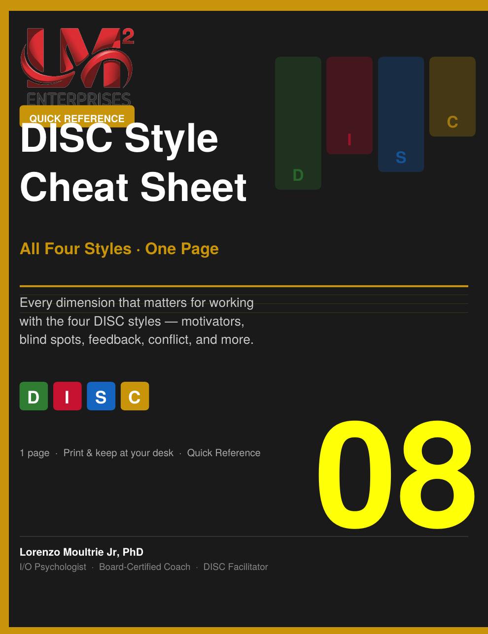 Every dimension that matters for working with all four DISC styles . Motivators, core fears, stress behavior, strengths, blind spots, how to communicate with them, how to give them feedback, how to handle conflict, and the specific signal to watch for when something is going wrong.